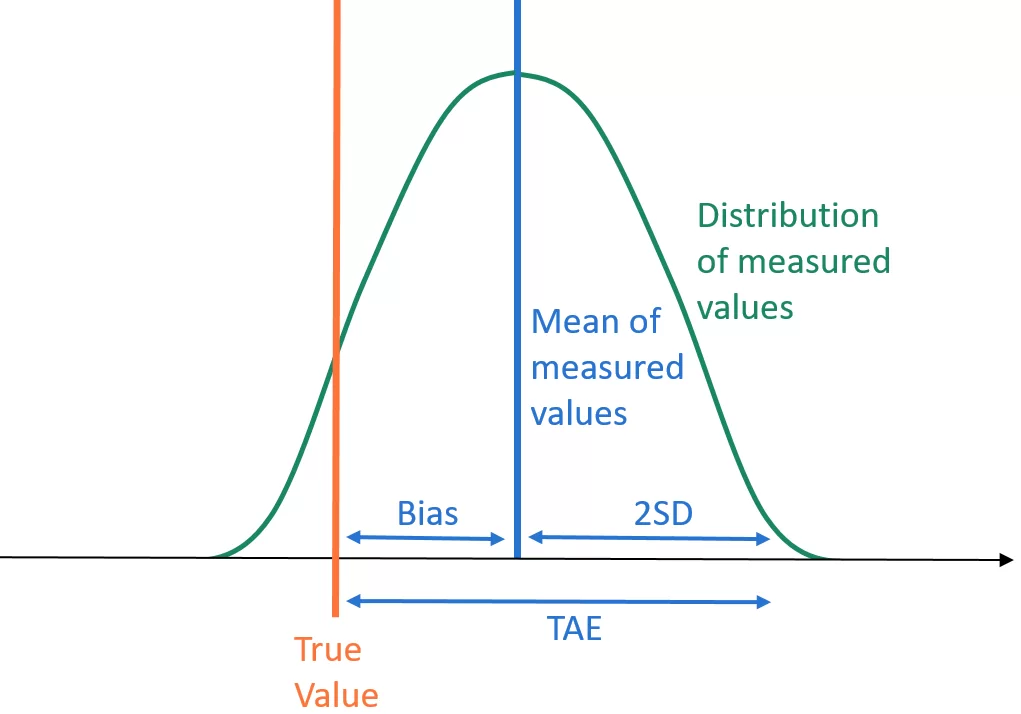 TAE is obtained by summing bias and two standard deviations